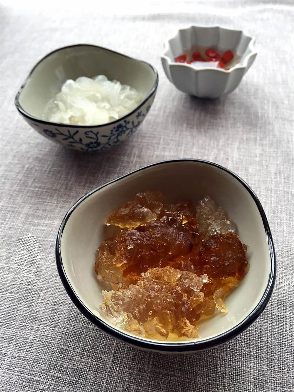 【烹制】取4-5颗桃胶提前一晚泡发至软涨,