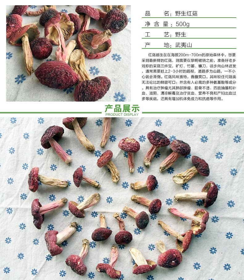 【野生菌之野生红菇500克】