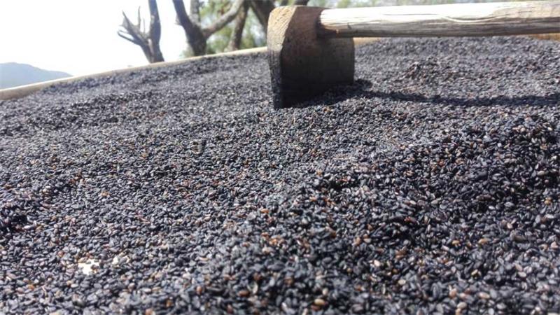 由于远离市区,就连最近的镇上都没有工业污染,露天晒芝麻根本不用担心空气污染及有害灰尘,生产用水是后山石缝流出来的泉水,口感甘冽。他们村是当地地里位置最高的村,所以水质非常好。